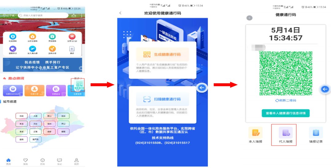 2.二次以后使用在“辽事通”APP首页面点击“健康通行码”图标后,点击“生成健康通行码”,将直接显示本人的健康通行码。