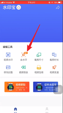 打开水印宝APP,点击【去水印】,选中要去水印的视频;