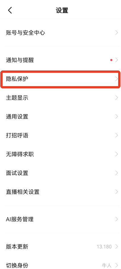 2.点击第三个【隐私保护】。