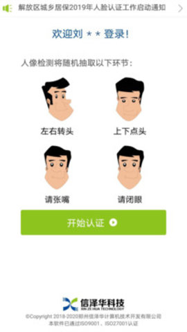 1.软件成功安装后,点击手机应用中的按钮,启动社会保险人脸认证平台(社保认证)手机版软件;