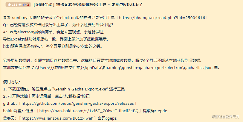 原神抽卡记录导出工具是一款是一款可以让用户查询近六个月以来游戏内的抽卡出货比例的数据导出工具,在原神抽卡记录导出工具中,可以根据数据生成表格和抽卡报告,包括武器活动祈愿、角色活动祈愿、常驻祈愿、新手祈愿等数据!感兴趣的-朋友快来下载原神抽卡记录导出工具吧。