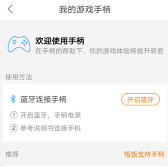 3、点击手柄功能,悟饭支持的手柄如下:悟饭定制手柄、北通蓝牙手柄、小米蓝牙手柄、IPEGA蓝牙手柄、雷剑蓝牙手柄、其他蓝牙手柄、主流OTG手柄。