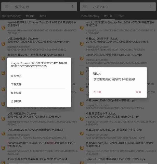 想要在线预览或下载文件需要配合“蟒蛇下载”使用,这是一个缺点,如果将这两个功能集成到该工具中我想这款应用能够更火。