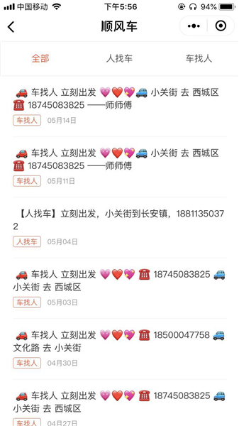 5、拼车车讯:附近乡镇随时查,出行更方便!