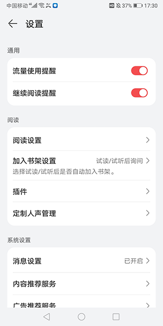 用户在听书时如果要设置自己的语音风格可以在设置页面中点击【定制人声管理】