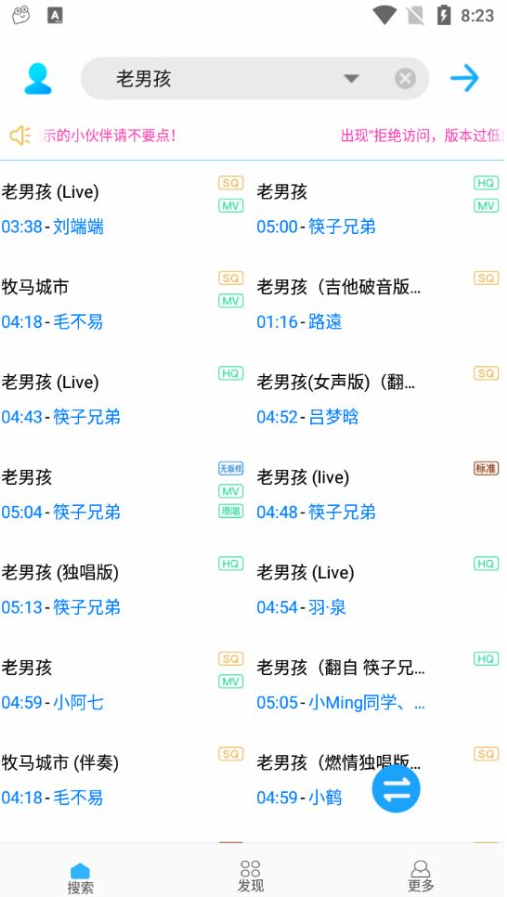 4、可以进行歌词或者关键字以及歌手等进行一键搜索。