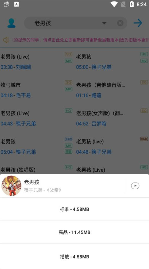 3、支持无损、标准以及高品和MV等,下载速度快;