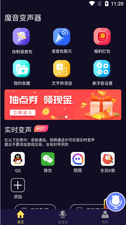 魔音变声器手机版是一款超级好用的变声软件,在魔音变声器手机版app中,支持微信、QQ语音平台,根据自己的喜好选择多种类型的音效,甚至可以在某些游戏开启语音的过程中使用变声软件欺骗自己的队友,超绝!快下载魔音变声器手机版试试吧!