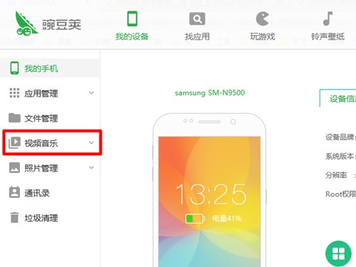 步骤2:等到手机和电脑成功连接后,在左侧找到【视频音乐】选项栏