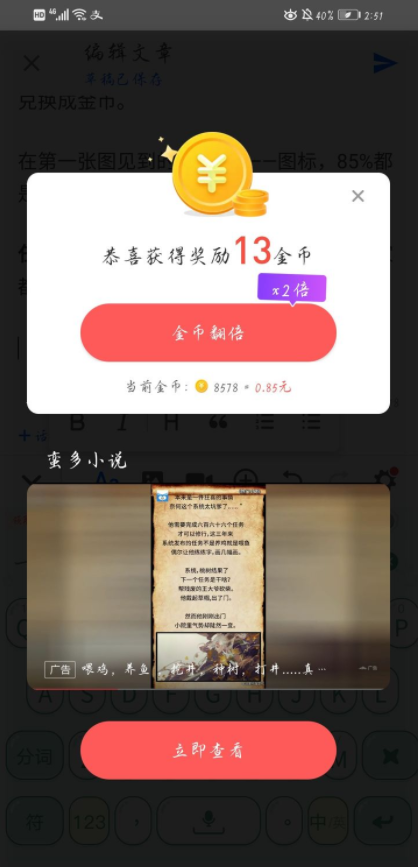 在第一张图见到的所——有——图标,85%都是要看广告的,在这里就不多解释了