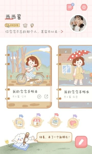 念念手帐app是一款超棒的线上手账平台小工具,在念念手帐app中,包含多种题材的工具,以青春少女为主角,内置丰富手账模板,大多都可以直接免费使用,还有自带用户论坛,快下载念念手帐app试试吧!
