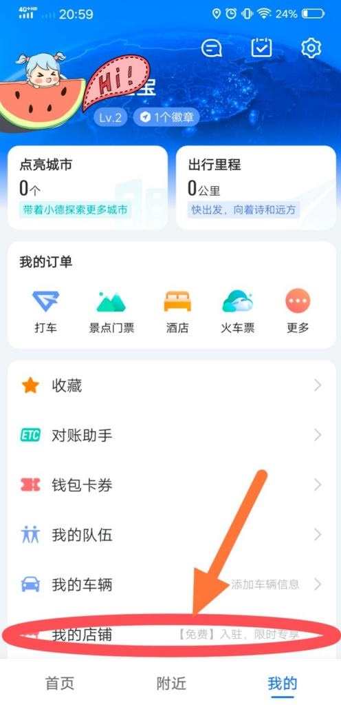 首先打开“高德地图”,在页面底部点击“我的”,然后点击“我的店铺”,如图所示