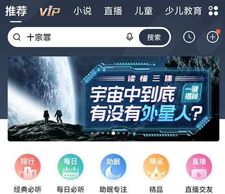 打开喜马拉雅APP后,通过各种版块、分类器,首先找到自己喜欢的小说资源;