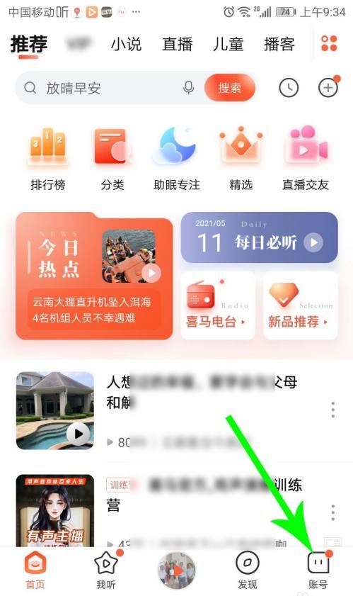 在喜马拉雅首页点击“账号”。