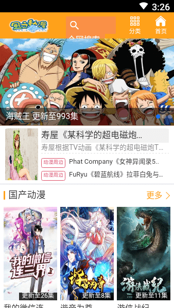 风之动漫APP是一款深受海贼王用户喜爱的追番平台,在风之动漫app安卓版中,海贼王整个系列都可以直接观看,免费下载,更加不会有任何的广告困扰,还有现下其他的热门动漫,快下载风之动漫APP试试吧!
