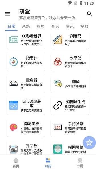 萌盒app是一款智能的线上工具箱,在萌盒最新app中,包含多种功能的分类板块,直接在线根据自己的需求进行选择操作,只有你想不到的,简约界面设计,轻松达到自己想要的,快下载萌盒app试试吧!