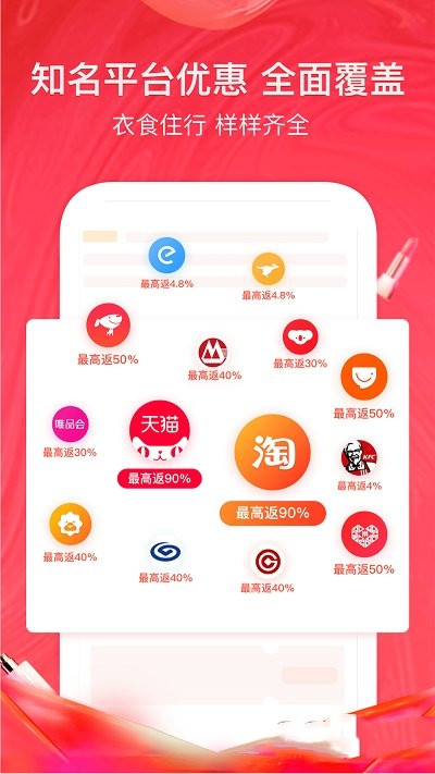 外卖、团购、电影票、电话充值、打车、快递等衣食住行优惠样样齐全,下单一笔省一笔