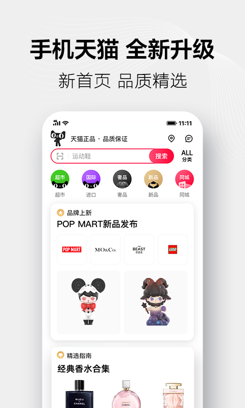手机天猫最新版app是一款非常受欢迎的商城购物软件,它是属于阿里巴巴旗下的购物商城,这里是千万高质量商品的汇聚地,各种各样的大牌商品这里都有,有需要的小伙伴赶紧来下载吧!