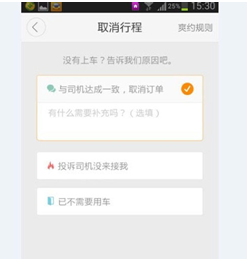 6、或者可以选择最后一条“已不需要用车”,也能取消打车,但是要小心接单的司机投诉你。