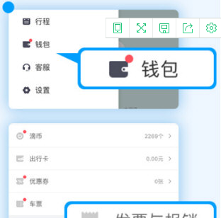 5、点击左上角的人形图标,可呼出个人信息设置页面。用户可查询自己的行程单、钱包、更改设置等等;
