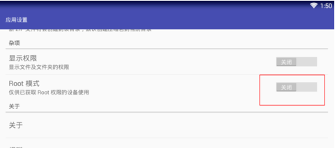 3、打开管理器后,点击应用设置,然后找到Root选项,将关闭的Root模式打开即可。