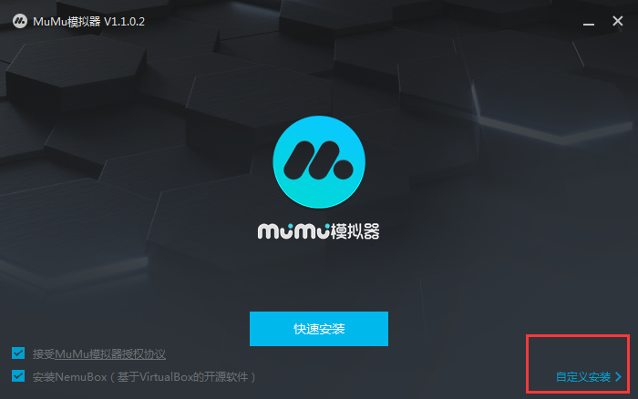 1、在PC下载网将网易手游模拟器下载下来,并解压到当前文件夹中,点击其中的MuMuInstaller_1.1.0.2_nochannel_zh-Hans_1558626115.exe应用程序,进入安装向导界面,接着点击自定义安装。