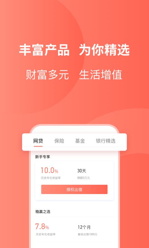 理财低门槛、高收益:100元起投,7.0%-12%高息稳健年化收益;