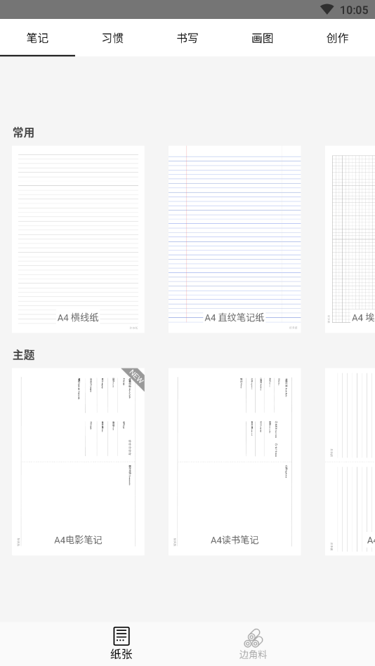 有专门做读书笔记的纸张样式,还有绘画所需的点格和网格,学习语文的音频田字格和米字格等