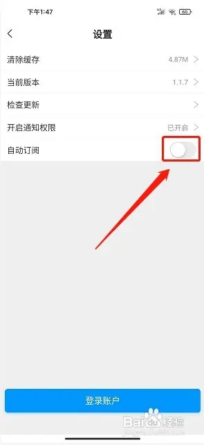打开设置界面,找到并点击“自动订阅”右侧按钮关闭,如图所示