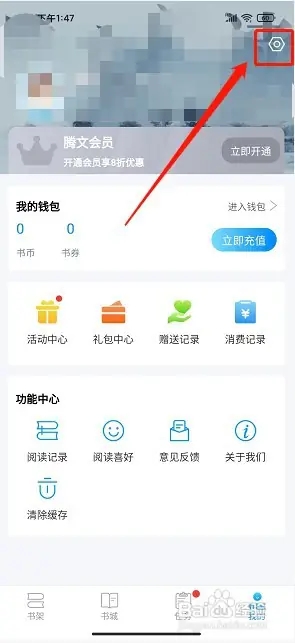 5、进入我的页面,可以选择阅读管理、我的账户、交易记录等功能