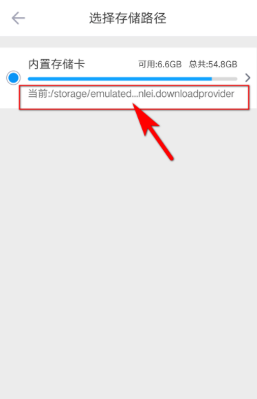 4、点击进入后,会查看文件的下载路径,但是路径没有显示完全,点击进入,选择上一级,就会看到完整的下载路径,路径就是Android/obb/com.xunlei.downloadprovider文件夹。
