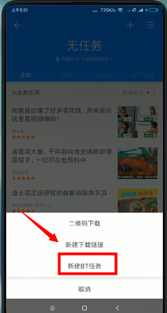 4、在弹出的选项中选择新建BT任务