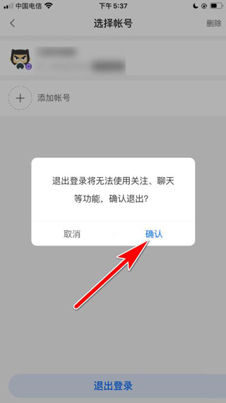 4、在弹出提醒框中点击确认的选项,即可退出登录当前帐号。