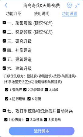 海岛奇兵钻石辅助工具脚本支持720*1280和DPI320分辨率的安卓手机和安卓模拟器;