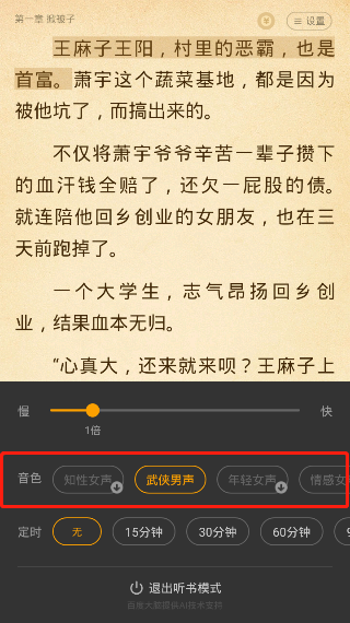 语音朗读功能提供多种声音任你选择,满足你的听书需求,解放双眼,随时随地听小说,海量小说免费听!