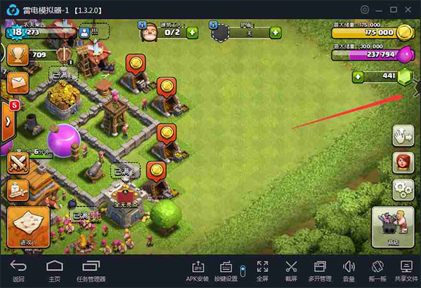 5、之后打开部落冲突,进入游戏,可以发现右边藏着个小外星人,点他就可以把他揪出来,点击启动就可以愉快地挂机了。