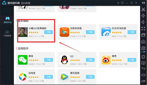 1、下载好雷电安卓模拟器,打开里面有自带的应用中心(如图)