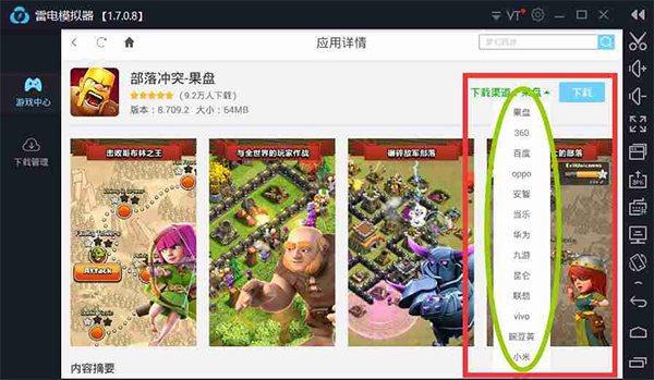 第三步:设备启动好之后,在红手指设备里记住是红手指设备里,不是手机里。下载两个软件【部落冲突】和【鸟人助手】