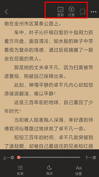 4、在阅读时可以签到,还能调整阅读的样式;