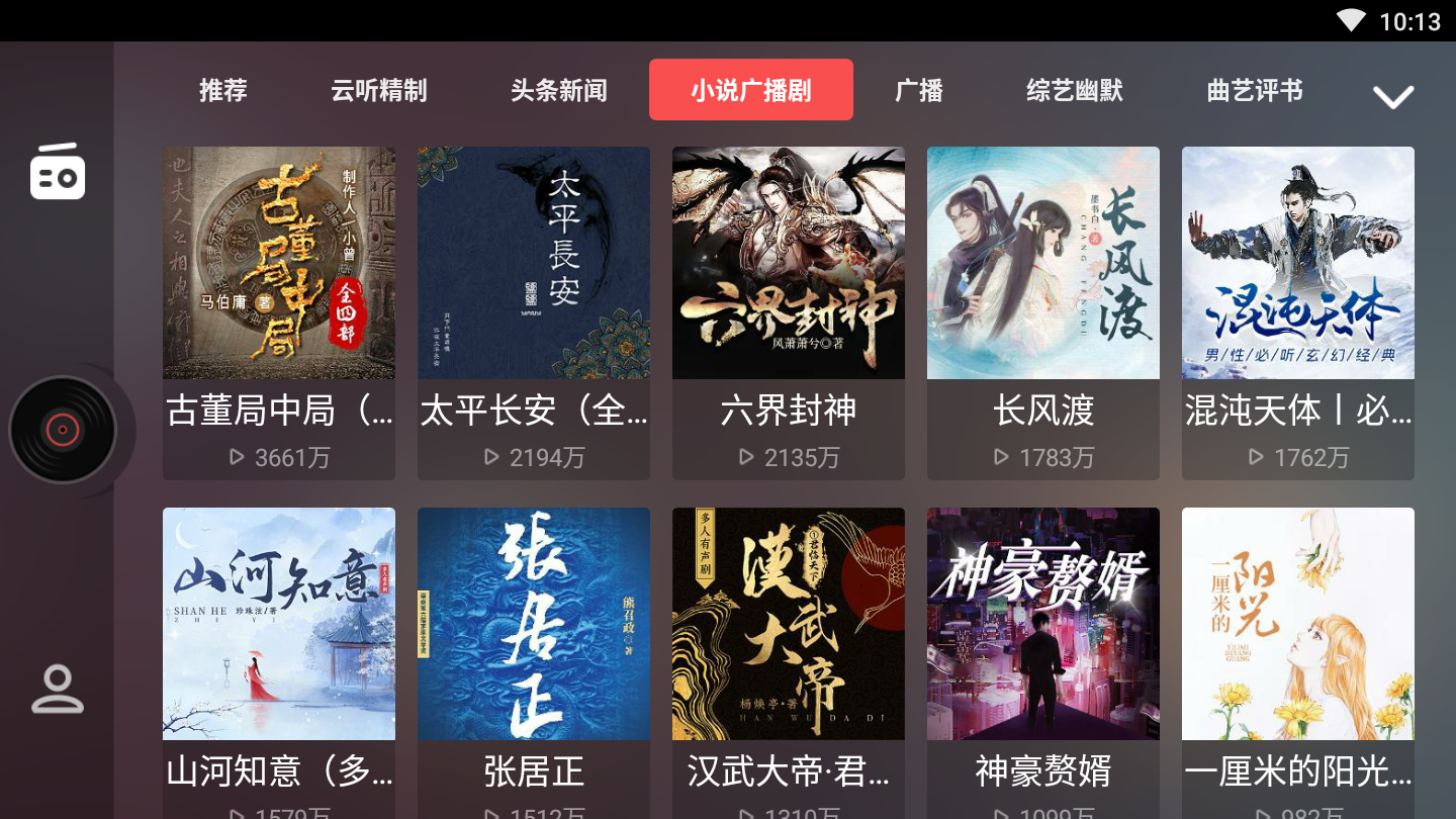 ·广播、小说、音乐、相声、头条、评书、曲艺;