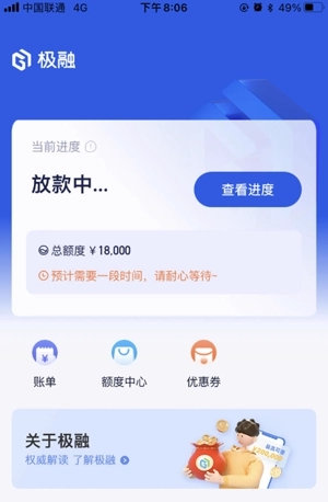 极融贷最高额度为3万元,最长周期可分为12个月,申请贷款的要求为23-50周岁,只需要提供个人的身份认证和人脸识别即可,通常1到7个工作日内就能到账。