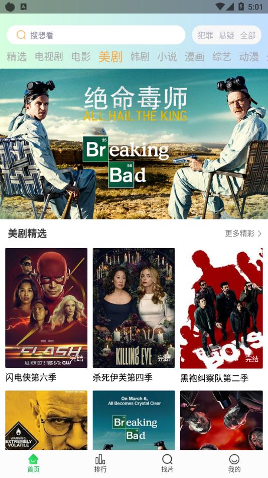 2、遇到剧荒怎么办?观看应用内的专题栏目,找到你感兴趣的电影或者电视剧