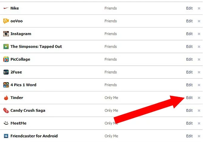 5在"你使用的应用"列表中找到Tinder。点击应用右侧的"编辑"。