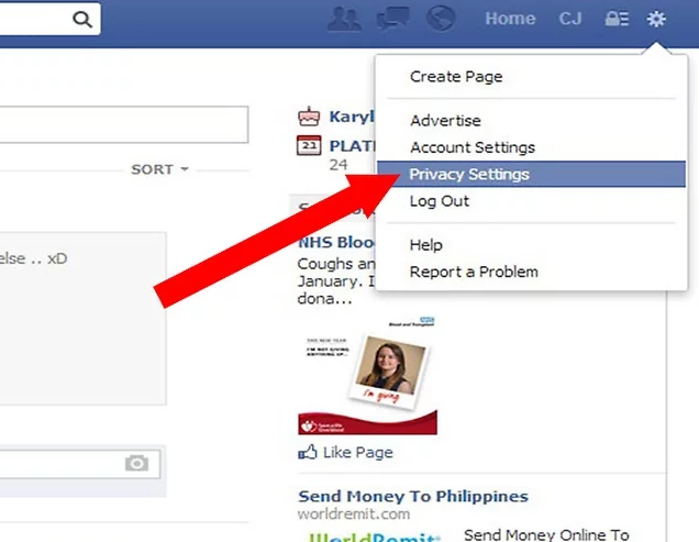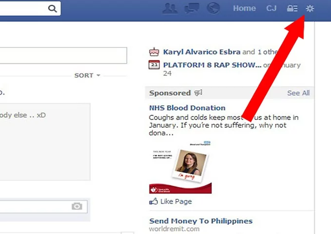 2点击你Facebook网主页右上角的设置按钮。那是一个齿轮状的按钮。