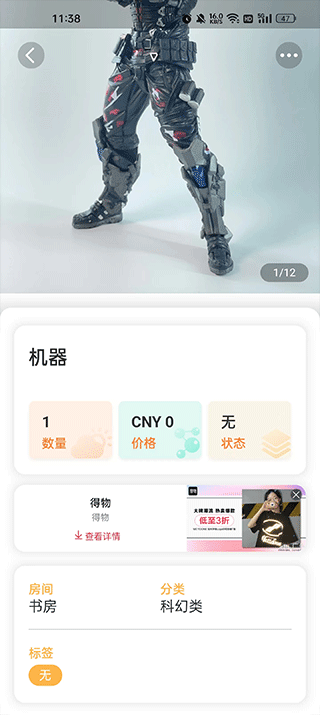 3、将物品拍照,填上名称、房间、分类依次填上,然后添加物品即可。