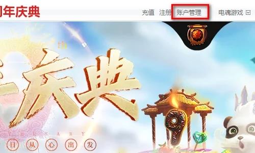 2、在官网首页右上角找到并点击打开账号管理;