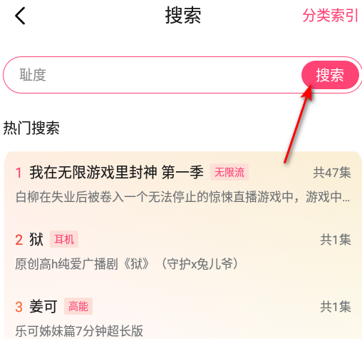 输入想找的广播剧搜索即可