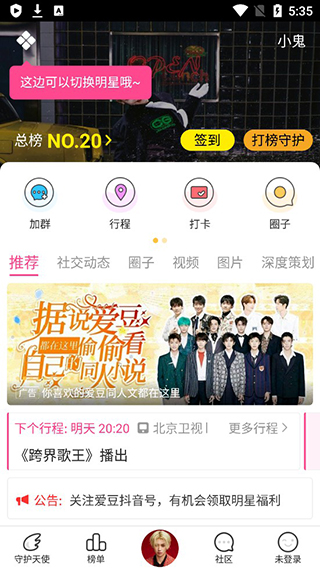 5、切换到社区,支持订阅你喜欢明星以及论坛等