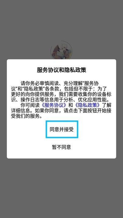 阅读弹出的服务协议和隐私政策,点击【同意并接受】;