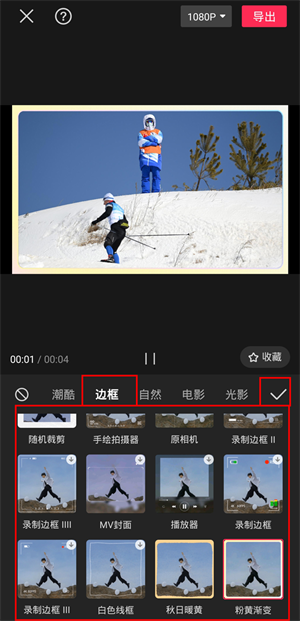 3、找到并点击边框,并选择一款自己喜欢的边框,点击【√】即可。
